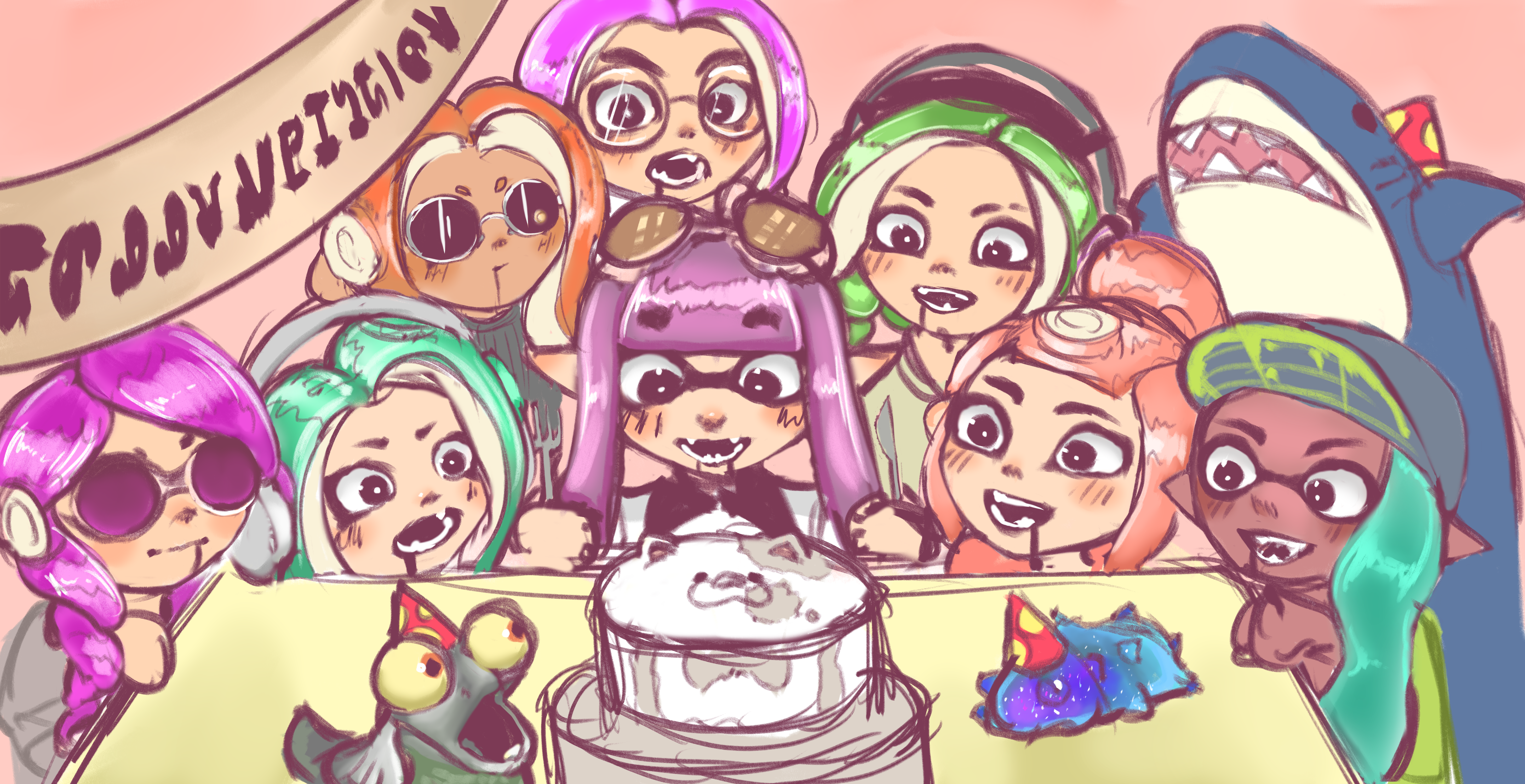 A drawing by Comfy made to celebrate Amber's 20th Birthday, featuring many creatures. A creature feature.